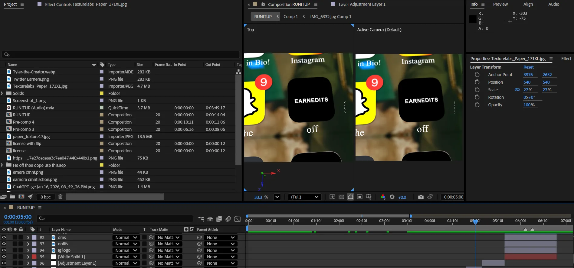 Everything you need to customize your viral edit quickly and professionally - all neatly organized inside one Adobe After Effects project.